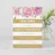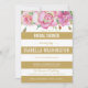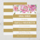 Pink Roses & Gold White Stripes Bridal Shower Invitation