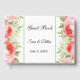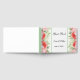 This wedding guest book is shown with a lovely pink roses floral print design, script and standard text in black.