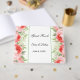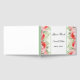 This wedding guest book is shown with a lovely pink roses floral print design, script and standard text in black.