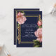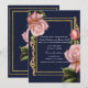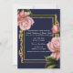 Pink Roses Navy Blue & Gold Modern Wedding Invitation