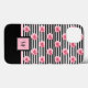 Pink Roses on Black and White Stripes with Initial Case-Mate iPhone Case