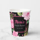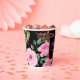 Toast the bride-to-be with Personalized Bridal Shower Paper Cups featuring the Modern Pink Roses on Black Elegance design. Perfect for cocktails, mocktails, or coffee, these cups add beauty and cohesion to your drink station while showcasing customized text for a personal touch.