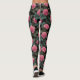 Elegant floral pattern featuring blooming pink roses with deep green leaves on a black background. Perfect for luxury fabric, and romantic floral Leggings.
