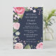 Celebrate your special day with elegance using this wedding invitation featuring delicate pink roses set against a sophisticated blue background. The white lettering creates a beautiful contrast, making all the details clear and easy to read, while the floral design adds a romantic and timeless touch.. . .