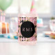 Pretty in pink! Trendy can glass with large pink roses with gold embellishment on bold black harlequin diamond background. Customise with monogram in centre black circle.  Perfect for bridesmaids or other wedding party!