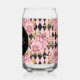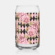 Pink Roses on Harlequin Monogram Can Glass