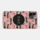Pink Roses on Harlequin Monogram Case-Mate iPhone Case