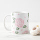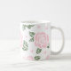 Pink Roses Pattern with Green Leaves and Hearts Coffee Mug