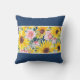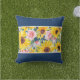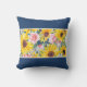 Bring a touch of nature's beauty to your outdoor living space with this gorgeous pink roses and yellow sunflowers on navy blue outdoor pillow.