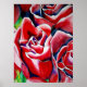 with original art design from watercolour painting by Sacha Grossel of multiple pink, close focus, macro rose flowers. This floral bunch of roses is bright, colourful, with blue and purple highlights and would appeal to lovers of botanical design everywhere.
