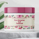 A waterproof label for cosmetics and/or soap products with a tan background and pink roses in the background. Customise it with your business and product information. This label measures 8.25 inches by 1.75 inches (209 mm by 44 mm) and is suitable for jars with a diameter of 2.6 inches (66 mm) or more and a label height area of at least 2 inches (50mm). Most 8 oz (240 ml) and 16 oz (480 ml) jars fit this description, but check the jar specifications to be sure. This label makes a great choice for packaging beauty products that require larger labels like sugar scrubs, body butters, and thick lotions and creams.