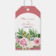 You'll love these wedding favour gift tags. The front bears our pink roses and green tropical leaves, with your names and wedding date. The reverse holds your personal message - placeholder text currently reads: "With love and thanks for sharing in our special day!"