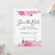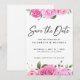 Modern watercolor pink roses with black handwritten style font customisable "Save the Date" invitation. This design features beautiful pink roses and a large calligraphy style font which you can change from black to any other colour you like. You can also personalise all details and text colours on this Save the Date design.