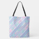 A very chic Tote Bag, with a pattern of diagonal Pink, Sky Blue and wWhite Deckchair stripes and Pink Roses and White Butterflies on Sky Blue Part of the Posh & Painterly 'Summer Days' collection, this pattern will fit any Tote Bag and can be customised by rotating the pattern or changing the scale for a very different look.
