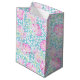 A pretty Medium Gift Bag, with a pattern of bright pink roses on a sky blue background, dotted with little white butterflies. Part of the Posh & Painterly 'Summer Days' collection, this pattern can be adjusted to fit any Gift Bag.