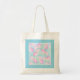 A pretty Budget Tote Bag, with a pattern of pink roses on a sky blue background, dotted with white butterflies within a border of White Polka Dots on Sky Blue. Part of the Posh and Painterly 'Summer Days' collection by Judy Adamson.