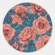 Pink roses with blue leaves on blue classic round sticker