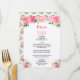 This fun and whimsical wedding menu features watercolor pink roses and foliage on a gold geometric frame. The text combines handwritten script and serif fonts for a stylish and modern look. This is perfect for a spring or summer rustic wedding.