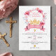 Pink Roses Wreath with Chalice First Communion Invitation