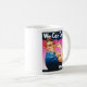 Motivational mug starring iconic WW2 heroine Rosie the Riveter flexiing her muscles. With magenta/pink background.