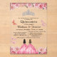 Celebrate the enchantment of your Quinceañera with our exquisite pink Floral Invitation adorned with delicate butterflies and a regal crown motif.dusty blue background sets the perfect tone for the occasion,
