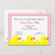 This pink baby shower invitation is both fun & Friendly. It's parade of bright yellow rubber ducky friends makes it the perfect baby shower invitation.