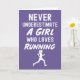 Designed specifically for her with a girly pink and sporty aesthetic, this card is blank inside for your personal message of encouragement or celebration. It's the perfect way to cheer on race days, celebrate personal achievements, honour holidays, or simply show support for the unstoppable running-loving girl in your life!