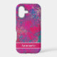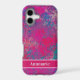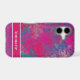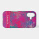 Modern pink abstract phone case design with powerful colored shapes in an explosive pattern. This styles features fluid art elements and layered shapes in varying shades like blue, magenta, and pink. With room at the bottom to personalize with your name.