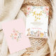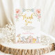 This adorable thank you card features cute safari animals wearing girly flower crowns on their heads, standing next to a pretty pink teepee adorned with watercolor blush roses and soft greenery. If you wish to change the fonts, font colours, or rearrange the text placement, simply click the "Customise Further" button.