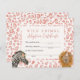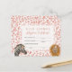 Cute safari theme girl's birthday party adoption certificate card featuring illustration of a lion and zebra with flower and party hat. The background is a pink leopard pattern. Give out stuffed animals during the party as a party favour along with this certificate!