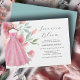 Celebrate the bride-to-be with these elegant pink bridal shower invitations online, featuring a charming watercolor dress surrounded by delicate florals in soft pink and sage blue. The phrase "Love is in Bloom" is styled in modern script typography, adding a romantic touch perfect for spring or garden parties.