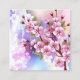 Artistically drawn, branch of pink, cherry blossoms on picturesque, textured background, painted over with white, pink and blue paint. Pink Sakura