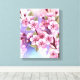 Artistically drawn, branch of pink, cherry blossoms on picturesque, textured background, painted over with white, pink and blue paint. Pink Sakura