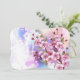 Artistically drawn, branch of pink, cherry blossoms on picturesque, textured background, painted over with white, pink and blue paint. Pink Sakura
