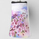 Artistically drawn, branch of pink, cherry blossoms on picturesque, textured background, painted over with white, pink and blue paint. Pink Sakura