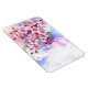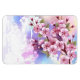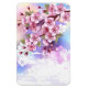Artistically drawn, branch of pink, cherry blossoms on picturesque, textured background, painted over with white, pink and blue paint. Pink Sakura