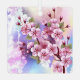 Artistically drawn, branch of pink, cherry blossoms on picturesque, textured background, painted over with white, pink and blue paint. Pink Sakura
