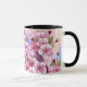 Artistically drawn, branch of pink, cherry blossoms on picturesque, textured background, painted over with white, pink and blue paint. Pink Sakura