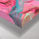 Abstract fantastic landscape in bright pink, blue and orange colours. Fluid art acrylic painting.