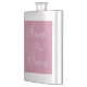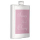 A women's hip flask design in cerise pink with white numerals reads "Sassy and Classy" A special occasion gift for weddings and bridesmaids, for her gifts.