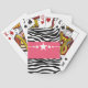 Trendy and modern Sassy Star Zebra Playing Cards featuring a chic black and white zebra print background and a bold magenta border adorned with a fun star motif. This girly design may be customised with the personalised text of your choosing. Click "Customise It" to find more personalisation options.