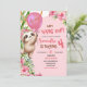 Pink Savannah Sloth Let's Hang Out Birthday Invitation
