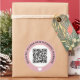 Wedding website QR code sticker in black, pink, and white with curved text and a white heart. Cute black, pink and white wedding QR code sticker.