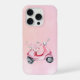 A soft watercolor phone case featuring a pink scooter decorated with delicate flowers.
