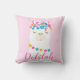 This sweet nursery pillow features an adorable illustrated llama with colourful tassels and pom-pom details on a soft pink background. The child's personalised name is displayed in a beautiful flowing script, making it a standout monogram keepsake. A charming accent for a llama-themed nursery, bedroom, or playroom. Customise the name for a truly special gift.