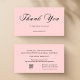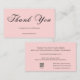 The front showcases a beautiful handwritten cursive script "Thank You for supporting our small business" in a soft pink layout with your website URL — simple, girly, and professional. The back carries your full appreciation message, a QR code linking directly to all your social profiles, and your Pinterest, Facebook, and Instagram handles — all of which can be customized to your liking.