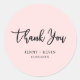 Designed to coordinate with our Pink and Gold Glitter wedding collection, this customizable thank you sticker features a script thank you font on pink background.