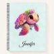 Spiral notebook with a cute illustration of a sea turtle. Pink body and shell with a floral topping. Looks happy and adorable.