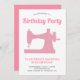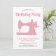 Invite your guests with this sewing theme birthday party invitation featuring a cute pink sewing machine and elegant typography against a white background. Simply add your event details on this easy-to-use template to make it a one-of-a-kind invitation.