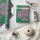 Cool wrapping paper for St. Patrick's Day birthdays or just any special occasion. The background is deep green, and the pattern is pink Celtic shamrocks. It's beautiful!